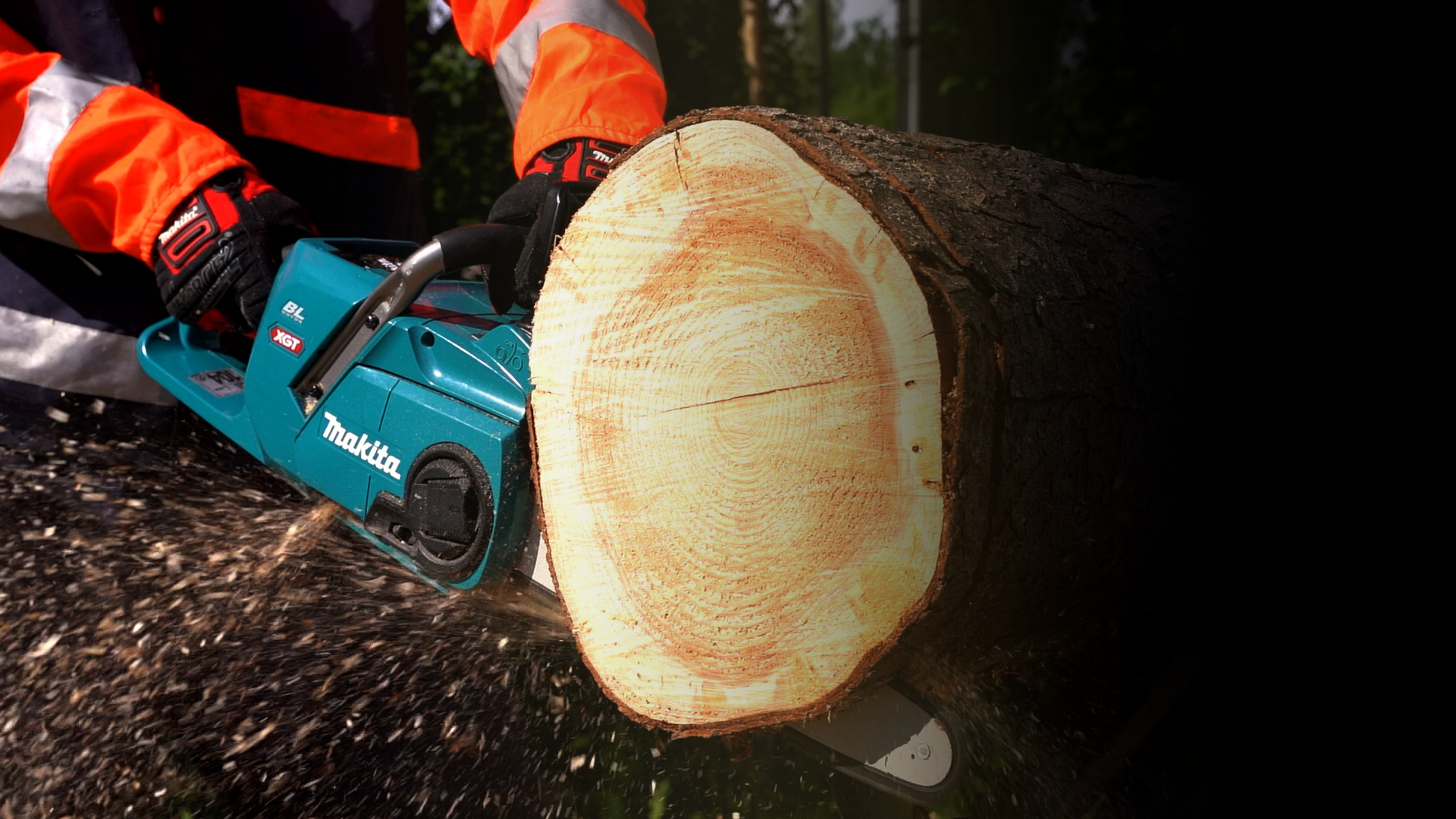 Makita´s new Cordless Chainsaw has excellent cutting performance equivalent to 42mL petrol-powered chain saws for smooth felling of trees with about 300mm trunk diameter. Thanks to XGT Technology, the new UC015G operates with one 40Vmax battery and is applicable to heavy duty operation with excellent work efficiency.